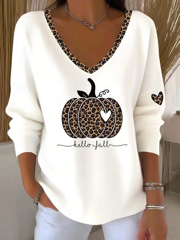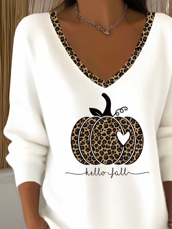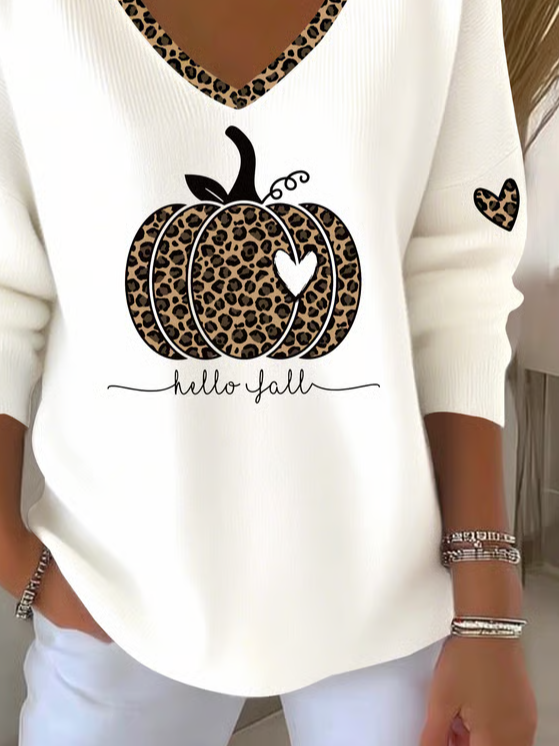 Women's Long Sleeve T-shirt Spring/Fall White Halloween (pumpkin) Printing V Neck Daily Going Out Casual Top