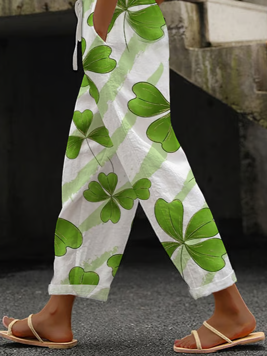 Women's Saint Patrick's Day H-Line Baggy Pants Daily Going Out Pants Green Casual Printing Shamrock Spring/Fall Pants