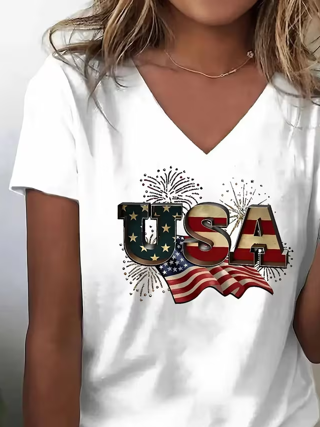 Women's USA 250th Anniversary Short Sleeve T-shirt Summer White Text Letters Jersey V Neck Holiday Going Out Casual Top