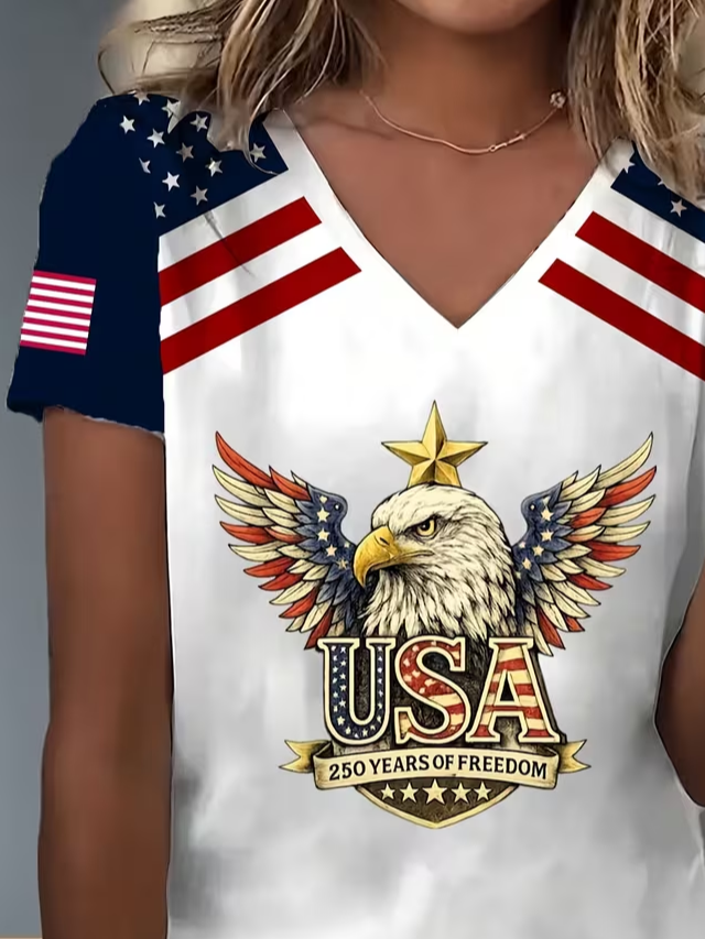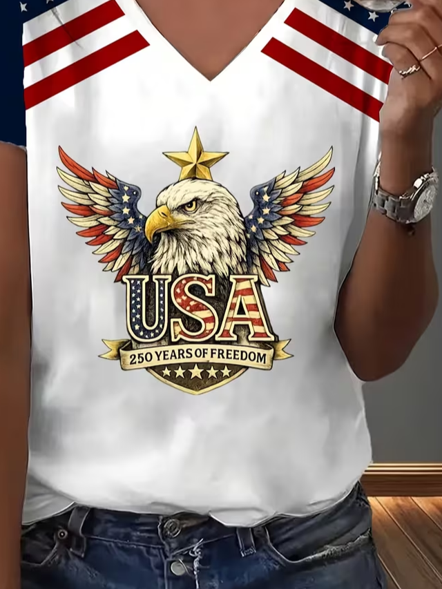 Women's USA 250th Anniversary Short Sleeve T-shirt Summer White Text Letters Jersey V Neck Holiday Going Out Casual Top