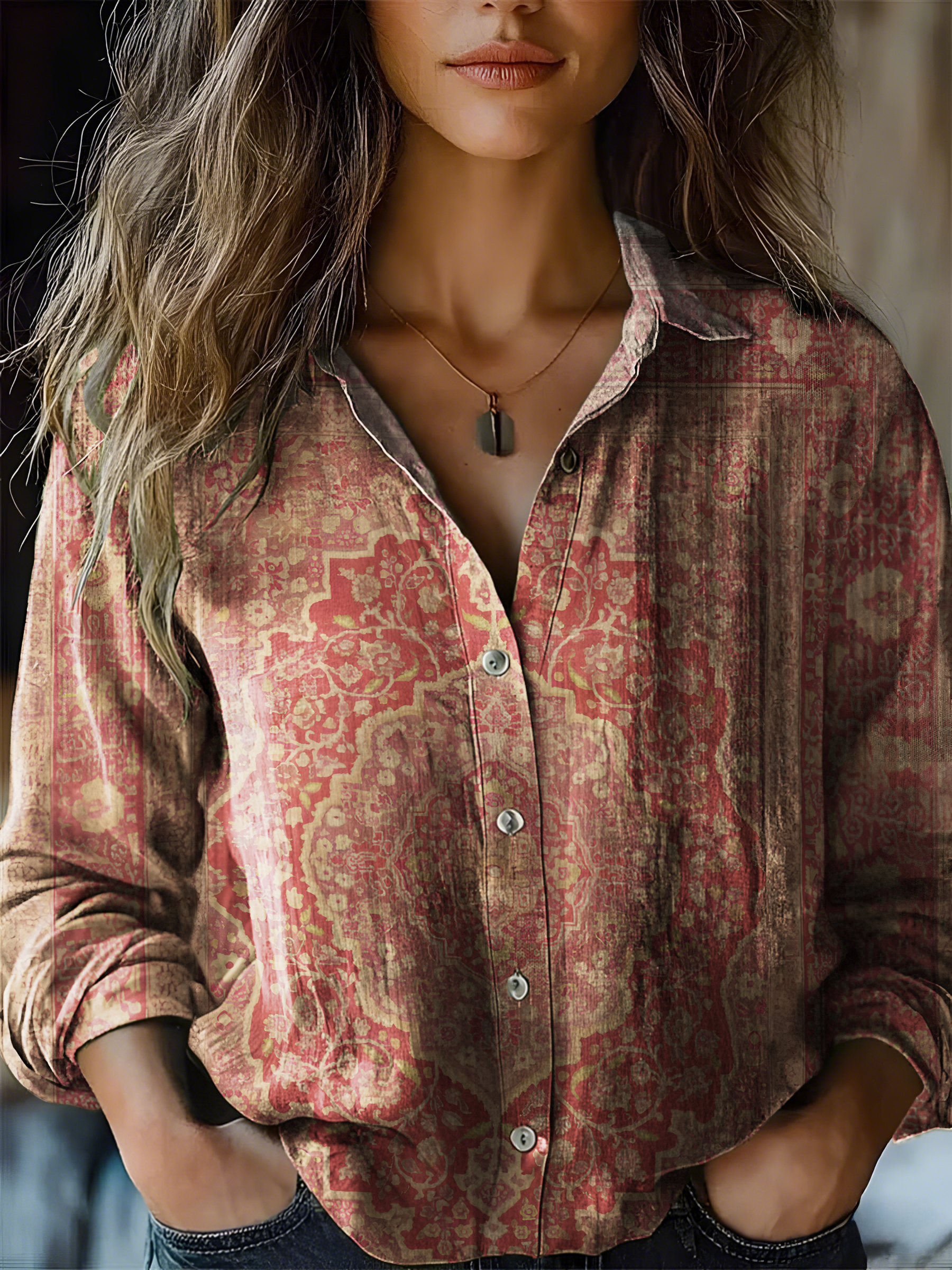 Women's Vintage Bohemian Floral Print Casual Shirt