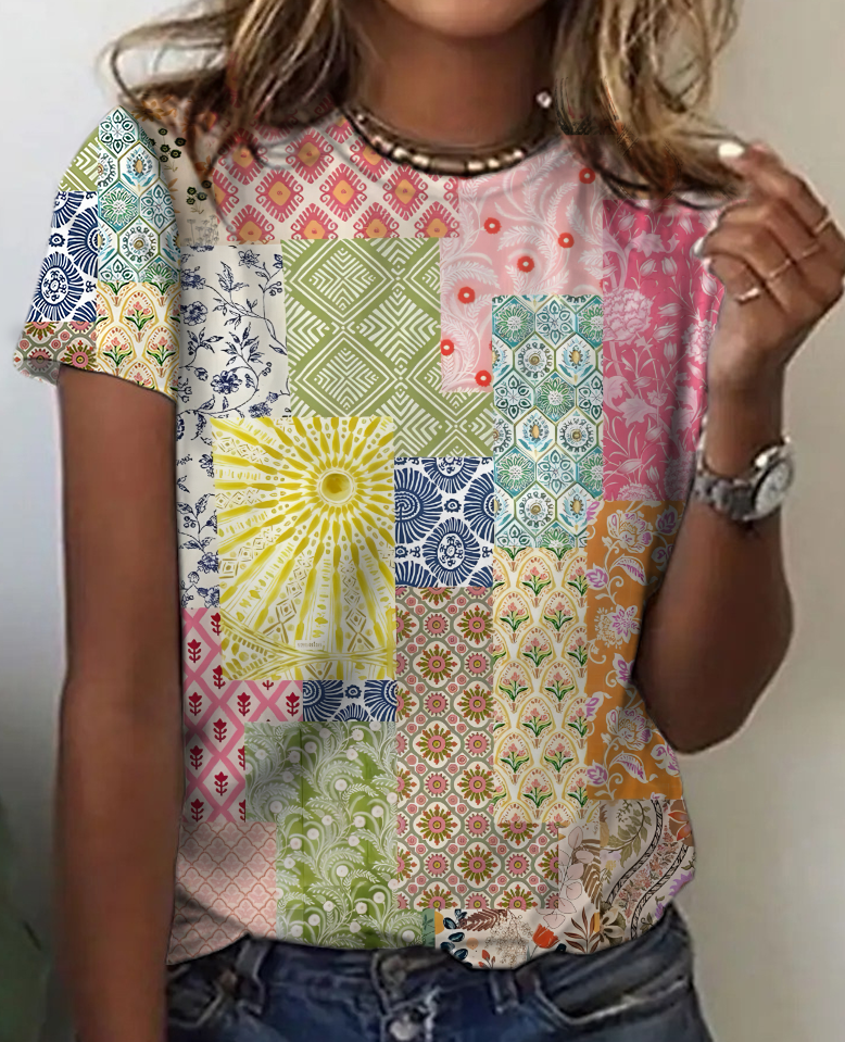 Women's Vintage Bohemian Floral Print Cotton T-Shirt