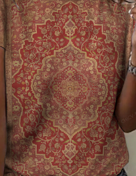 Women's Vintage Bohemian Floral Print Cotton T-Shirt