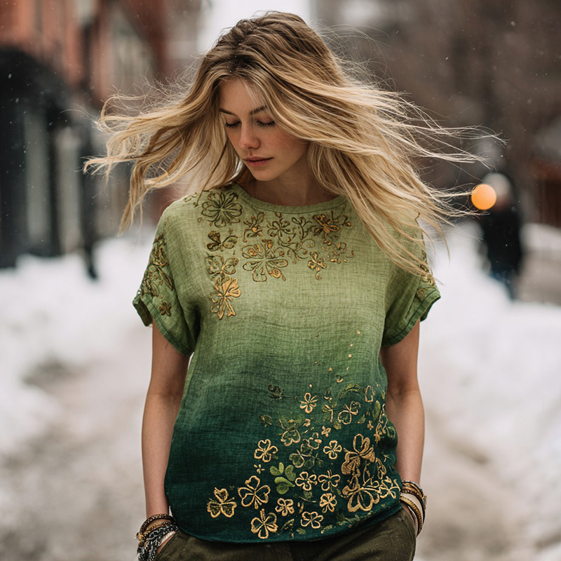 Women's Celtic Knot And St. Patrick's Day Shamrock Casual Linen T-shirt