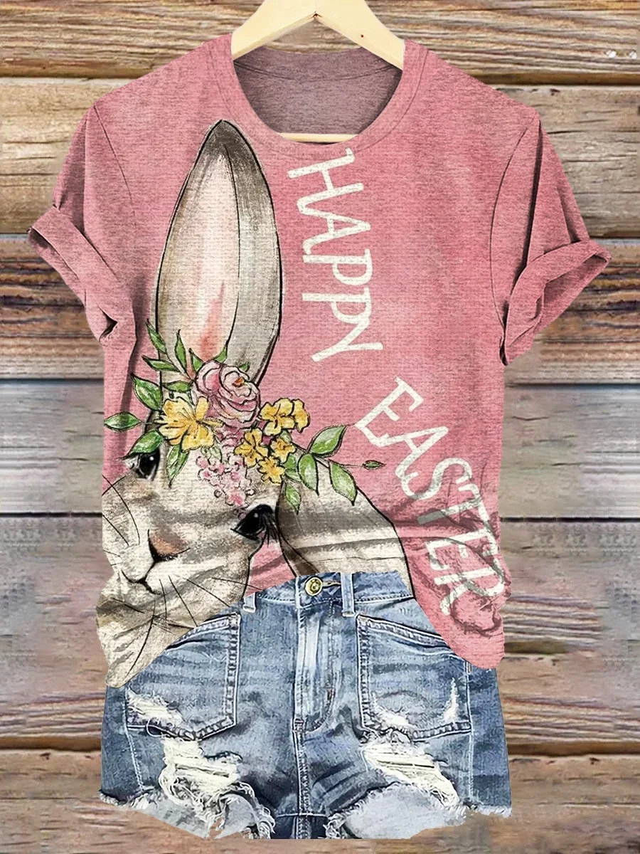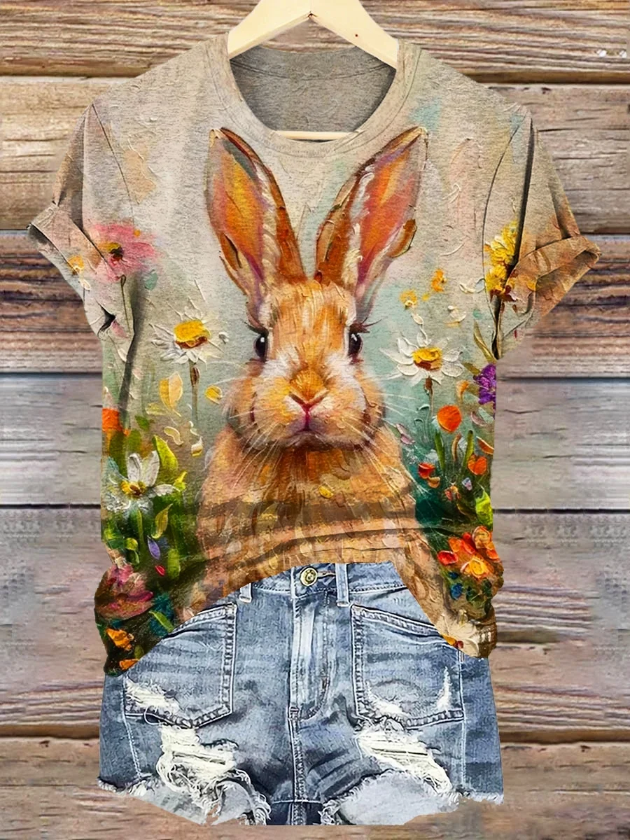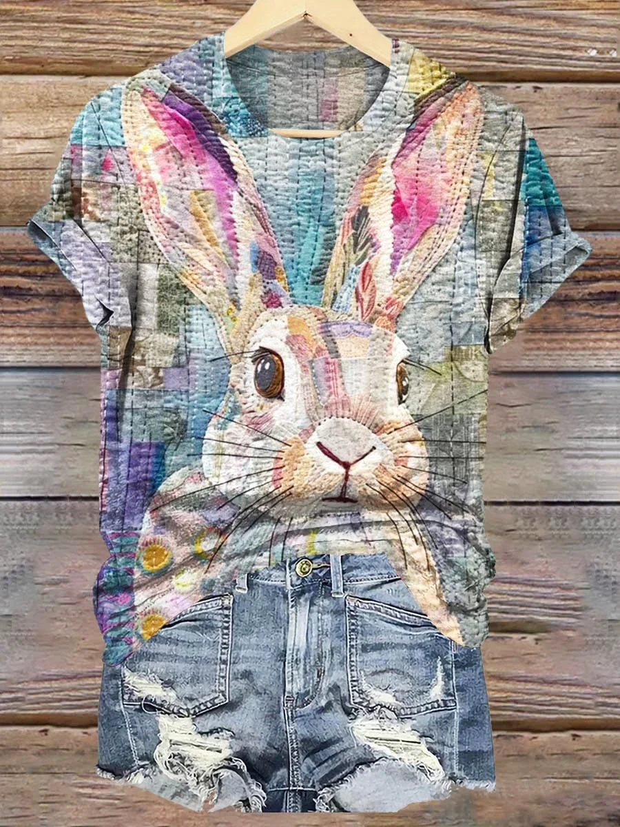 Women's Easter Bunny Collage Art Print Crew Neck T-Shirt