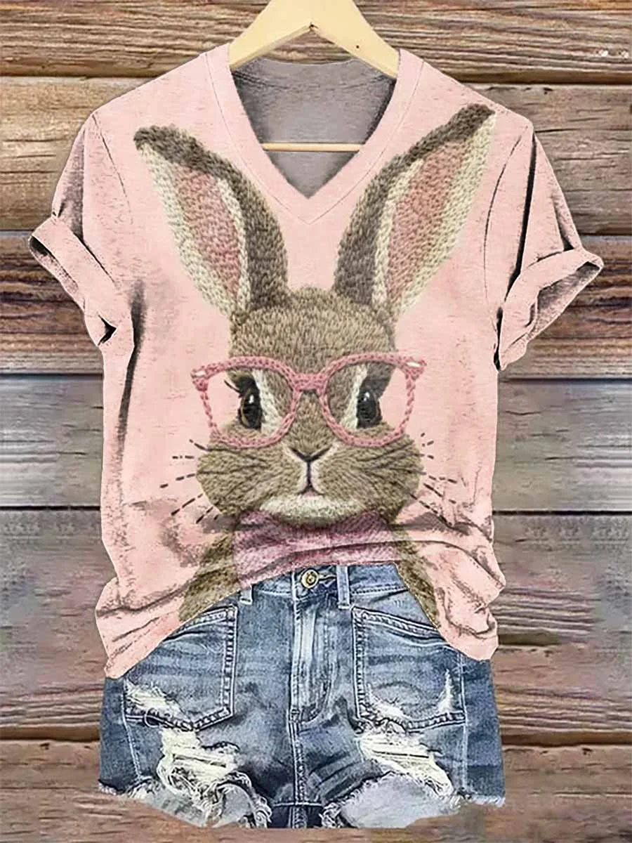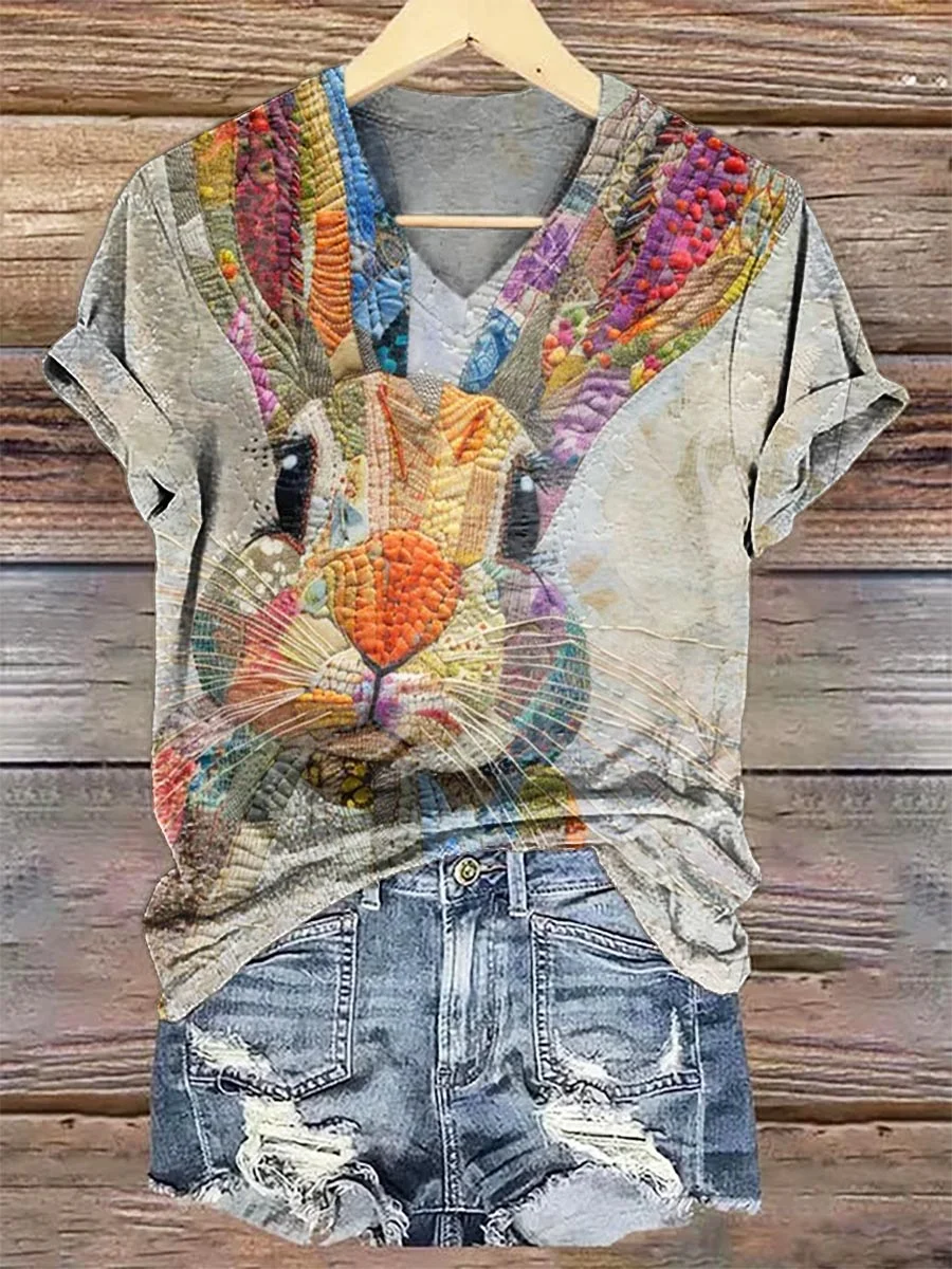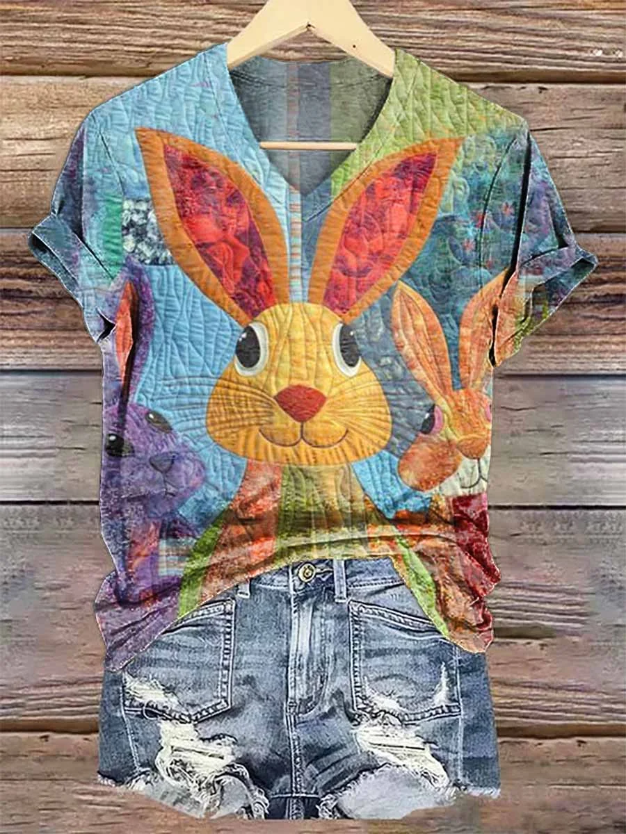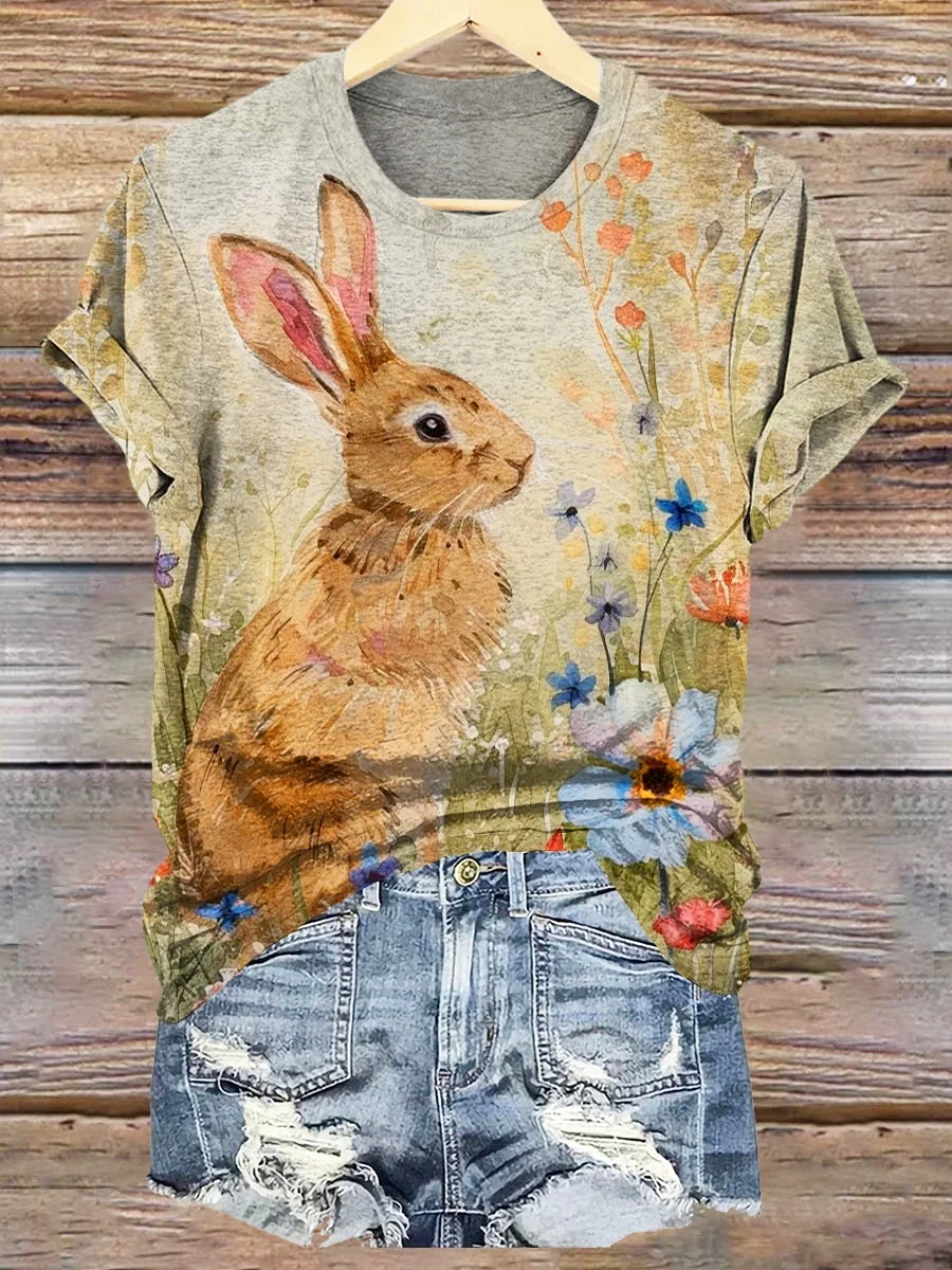 Women's Easter Bunny Collage Art Print Crew Neck T-Shirt