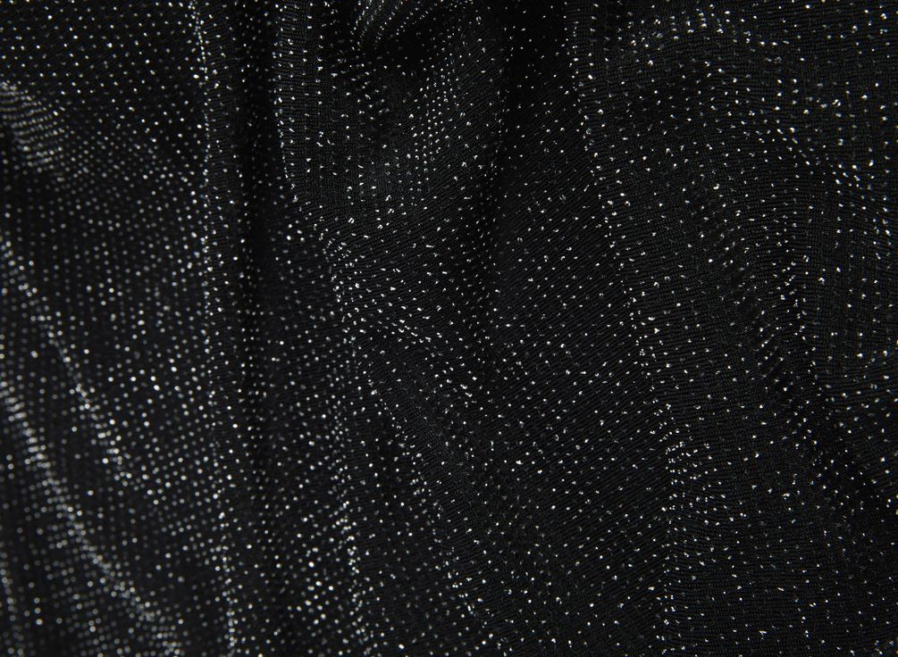 A stylish dark grey jumpsuit with a splash of sparkle, featuring a zip-up front and a relaxed, wide-leg fit. Made from stretchy, draping fabric for a chic and comfortable look.