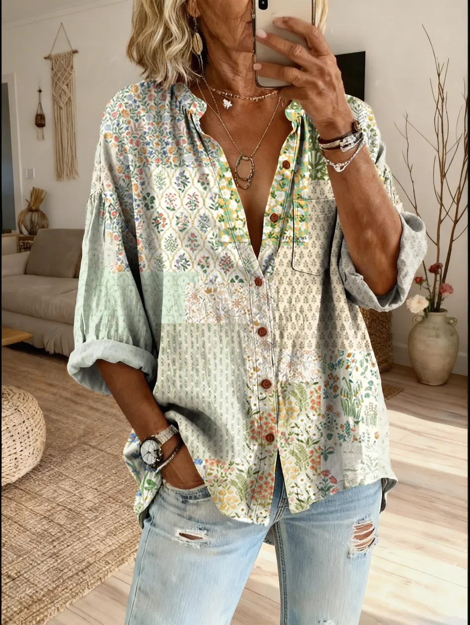 Women's Floral Art Print Casual Cotton-linen Blend Shirt