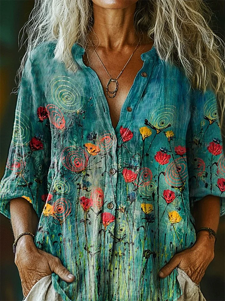 Women's Floral Art Print V-Neck Casual T-Shirt