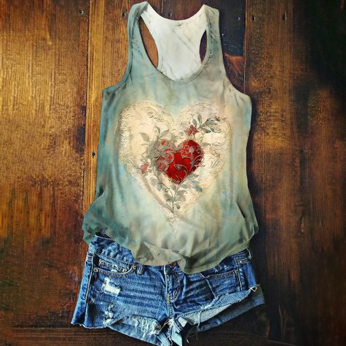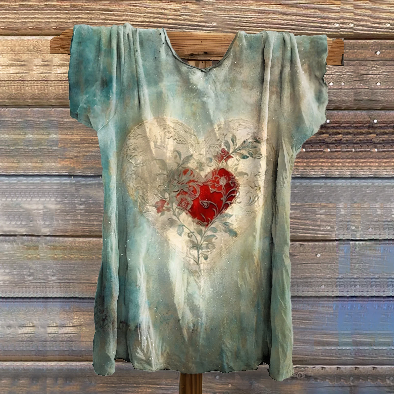 Women's Floral Heart Pattern Art Print Casual Cotton Linen Shirt