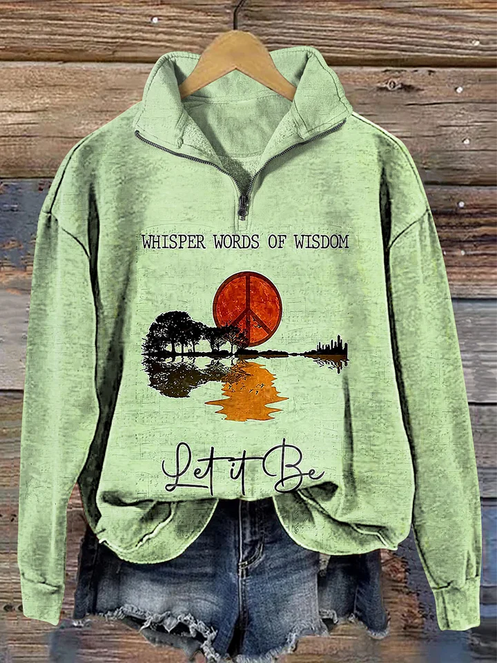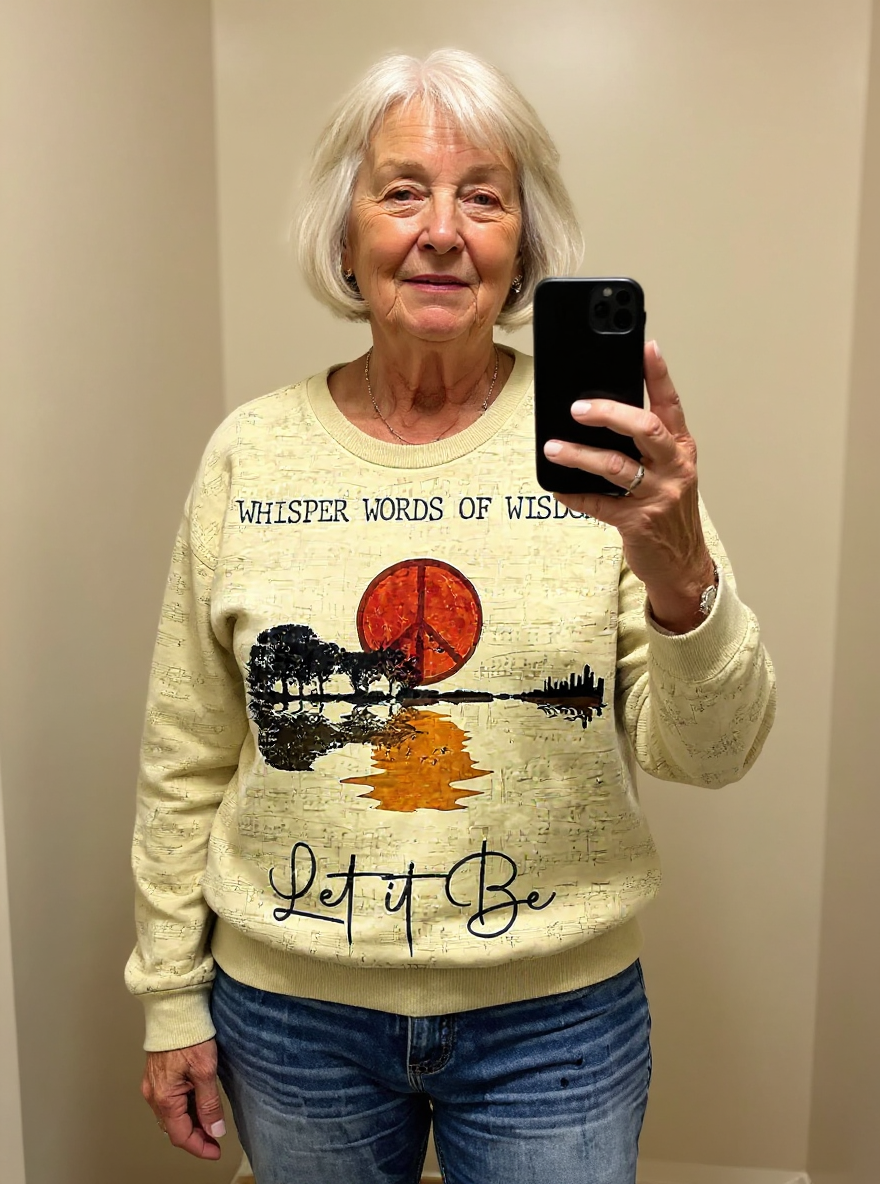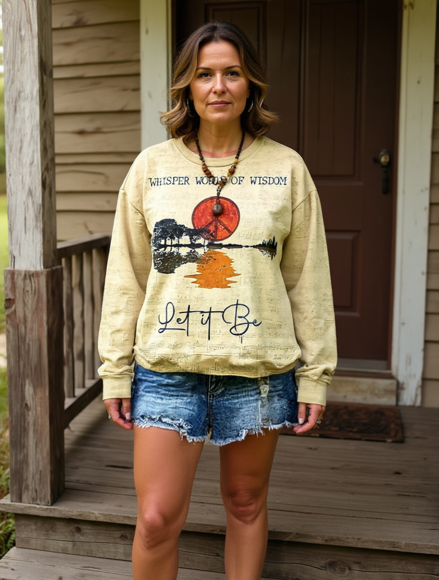 Women's Hippie Whisper Words Of Wisdom Print Casual Crew Neck Sweatshirt