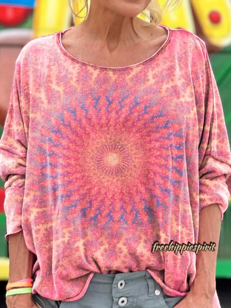 Women's Kaleidoscope Tie Dye Art Print V-neck Casual T-Shirt