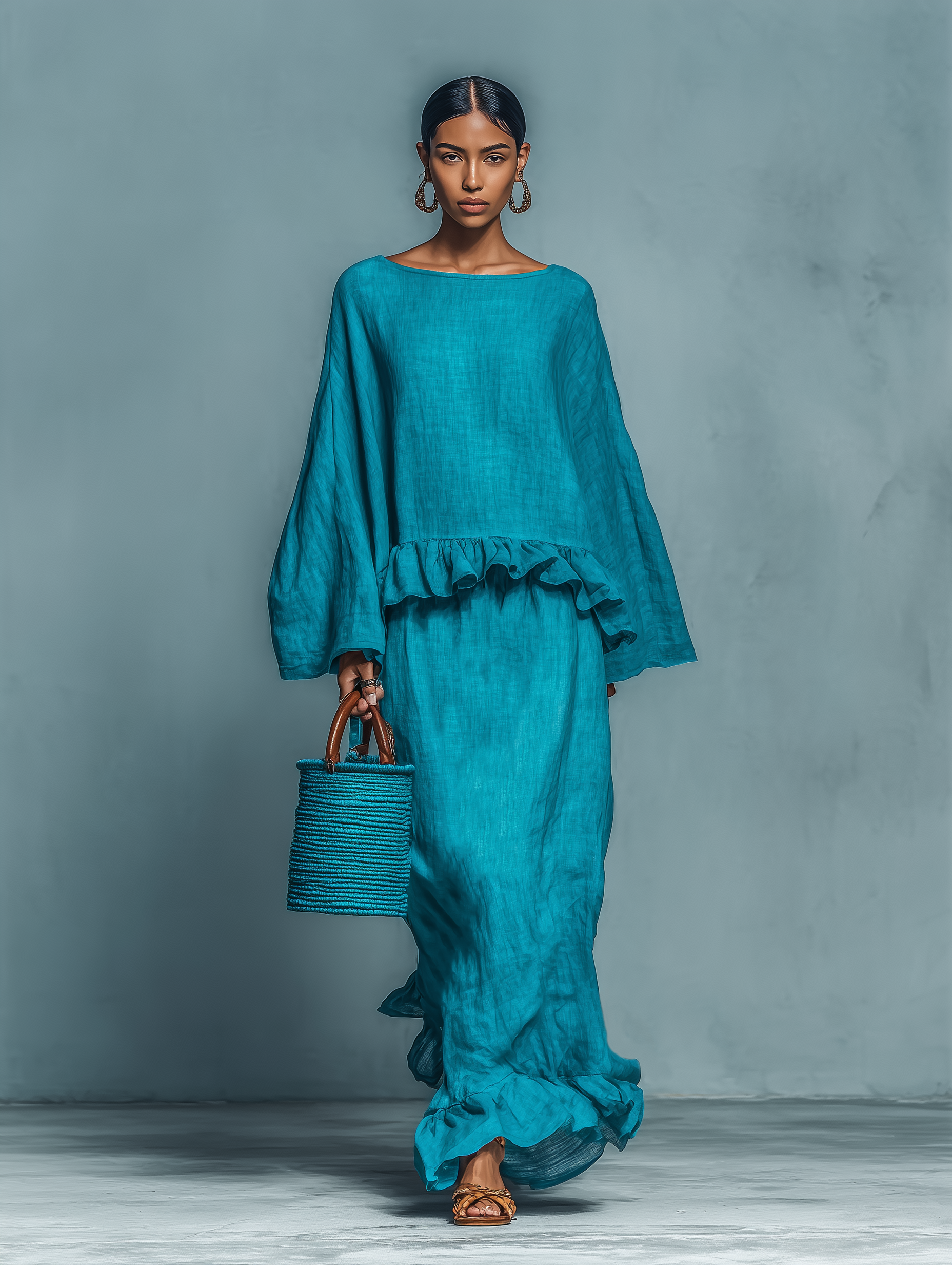 A breathable two-piece set featuring a linen-blend blouse paired with a straight-cut skirt, offering a clean, minimalist look for everyday elegance.