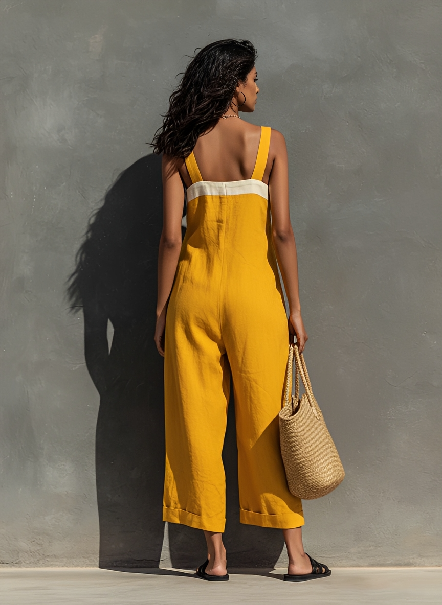 Product Name: Women’s Minimalist Linen Blend Square Neck Strapless Loose-fitting Jumpsuit