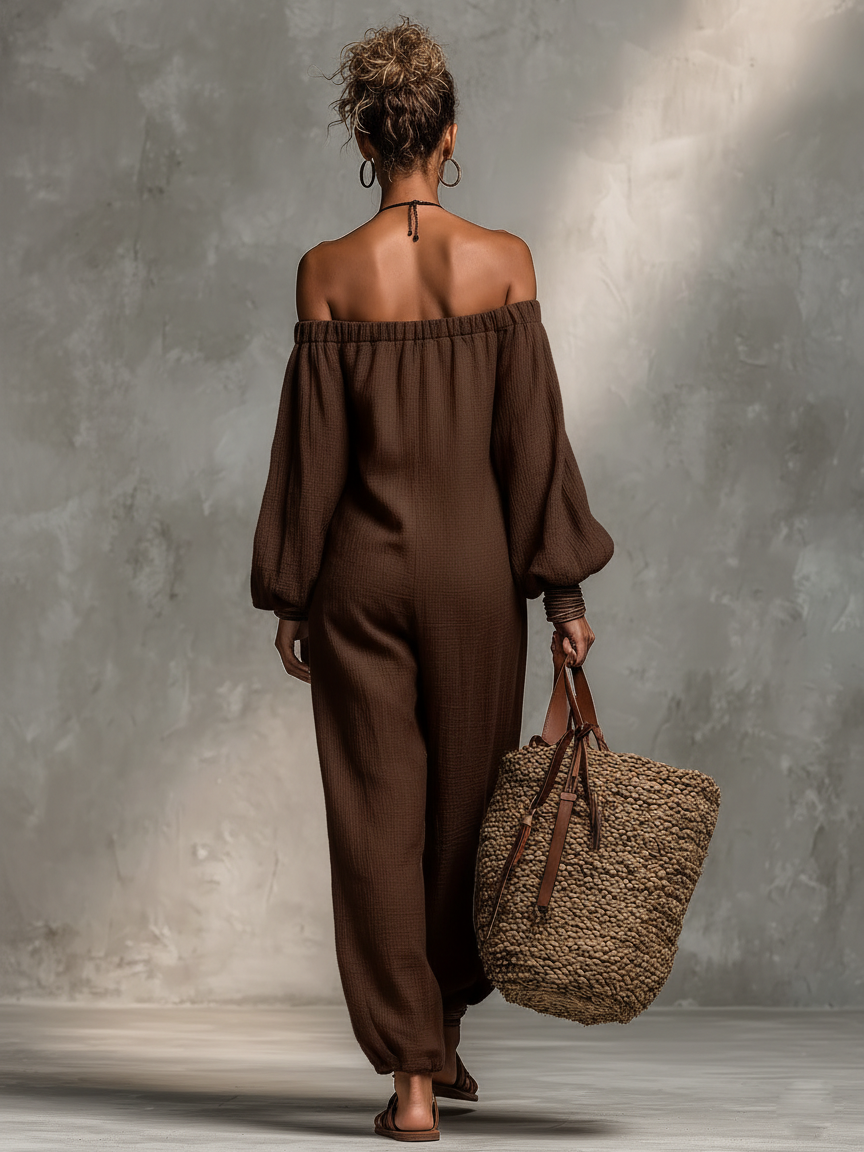 Product Name: Women’s Minimalist Linen Blend Strapless Long-sleeved Jumpsuit