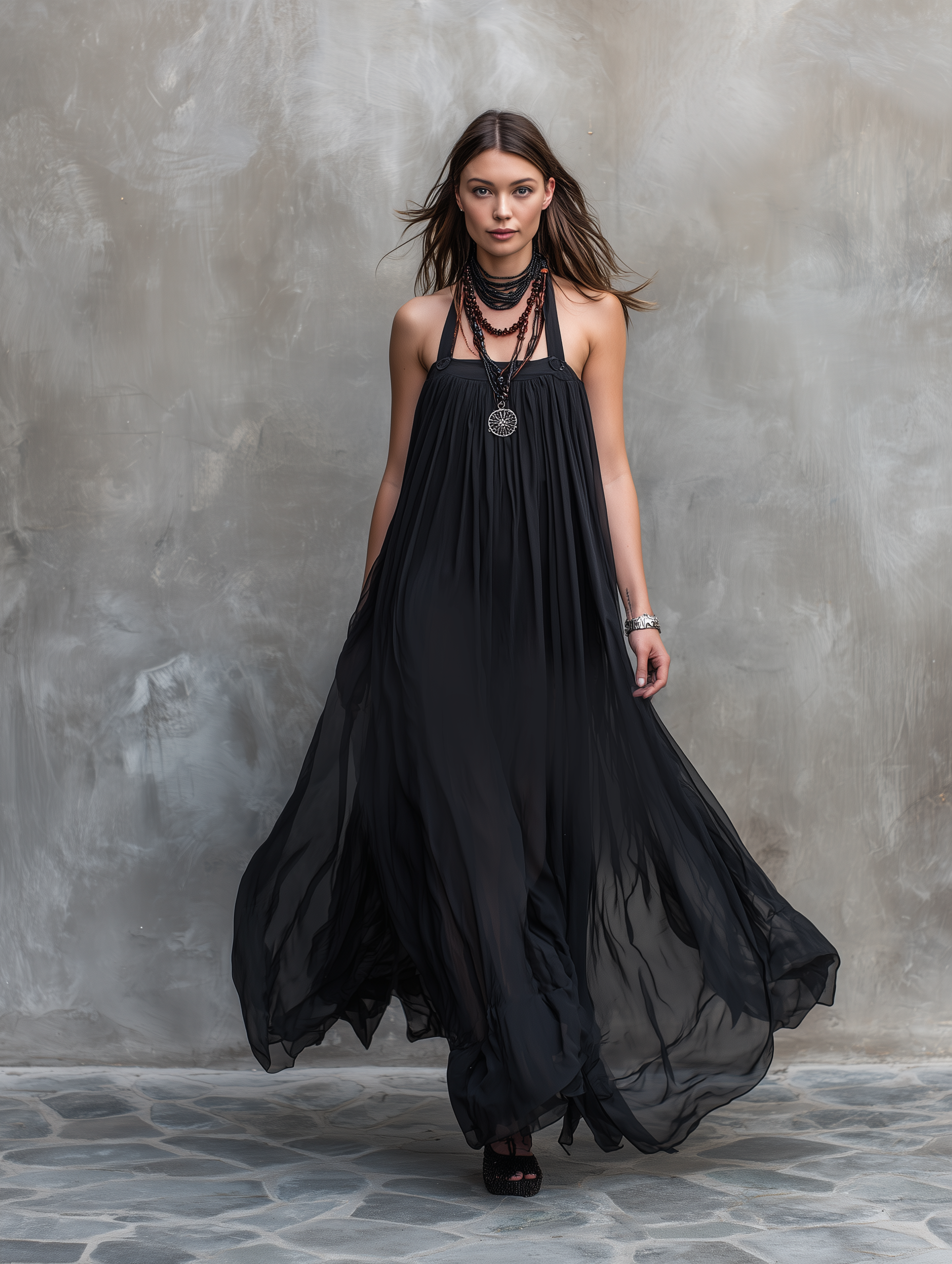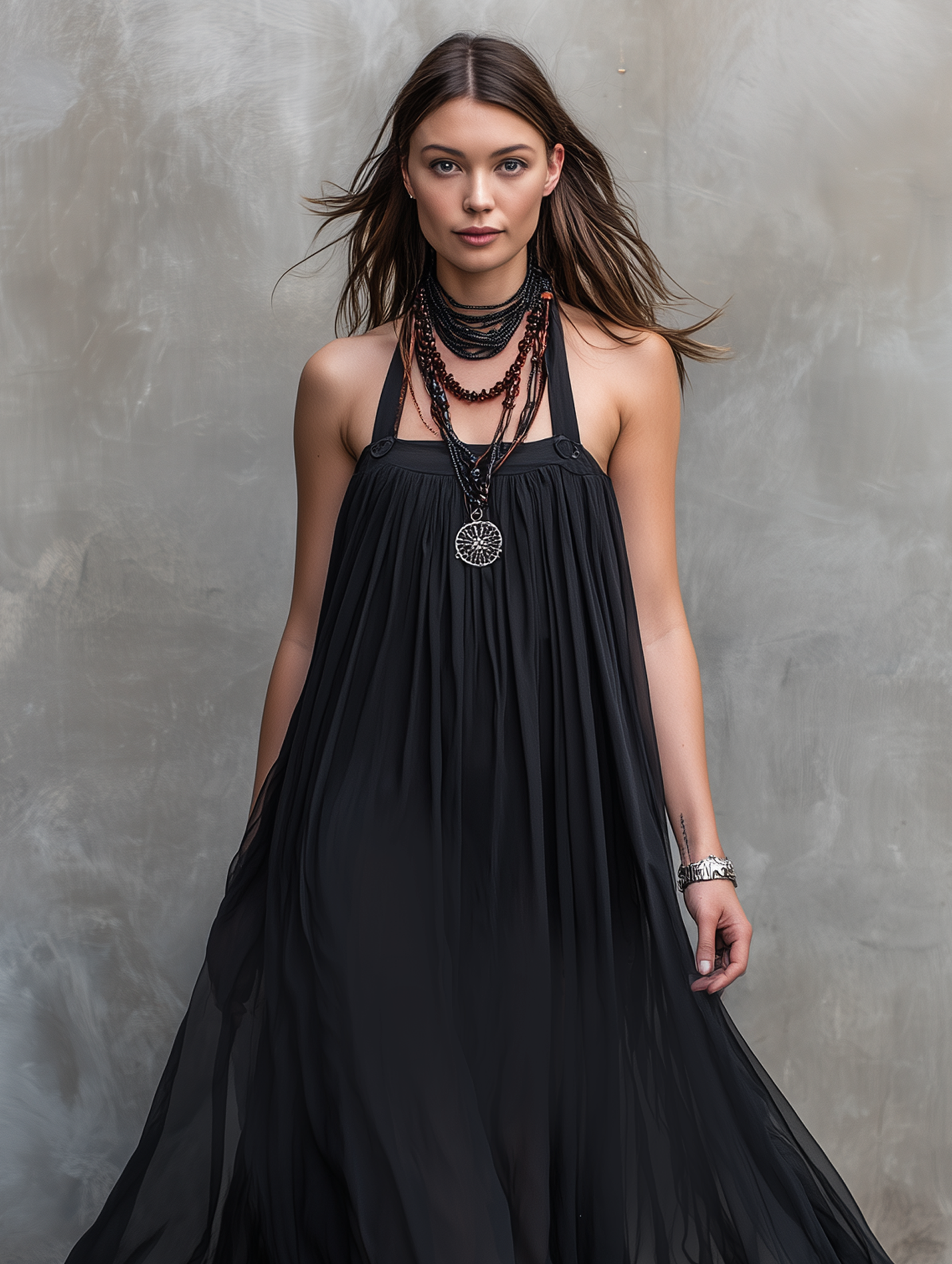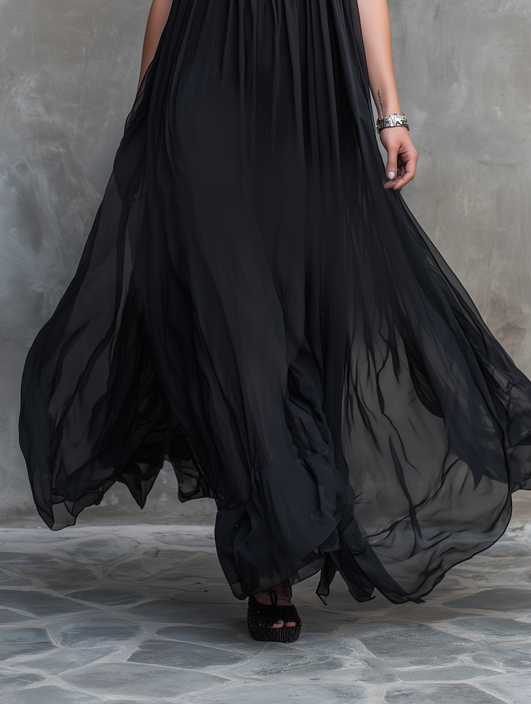 Product Name: Women's Minimalist Loose-Fit Halter Chiffon Maxi Dress