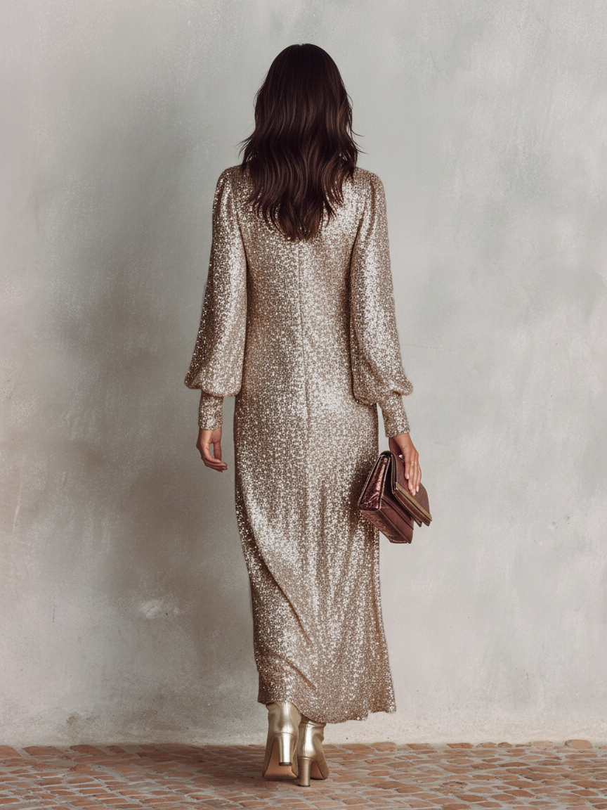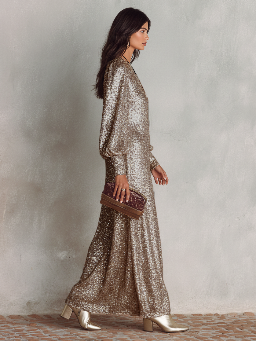 Women's Minimalist Loose Shimmering V-Neck Maxi Party Dress