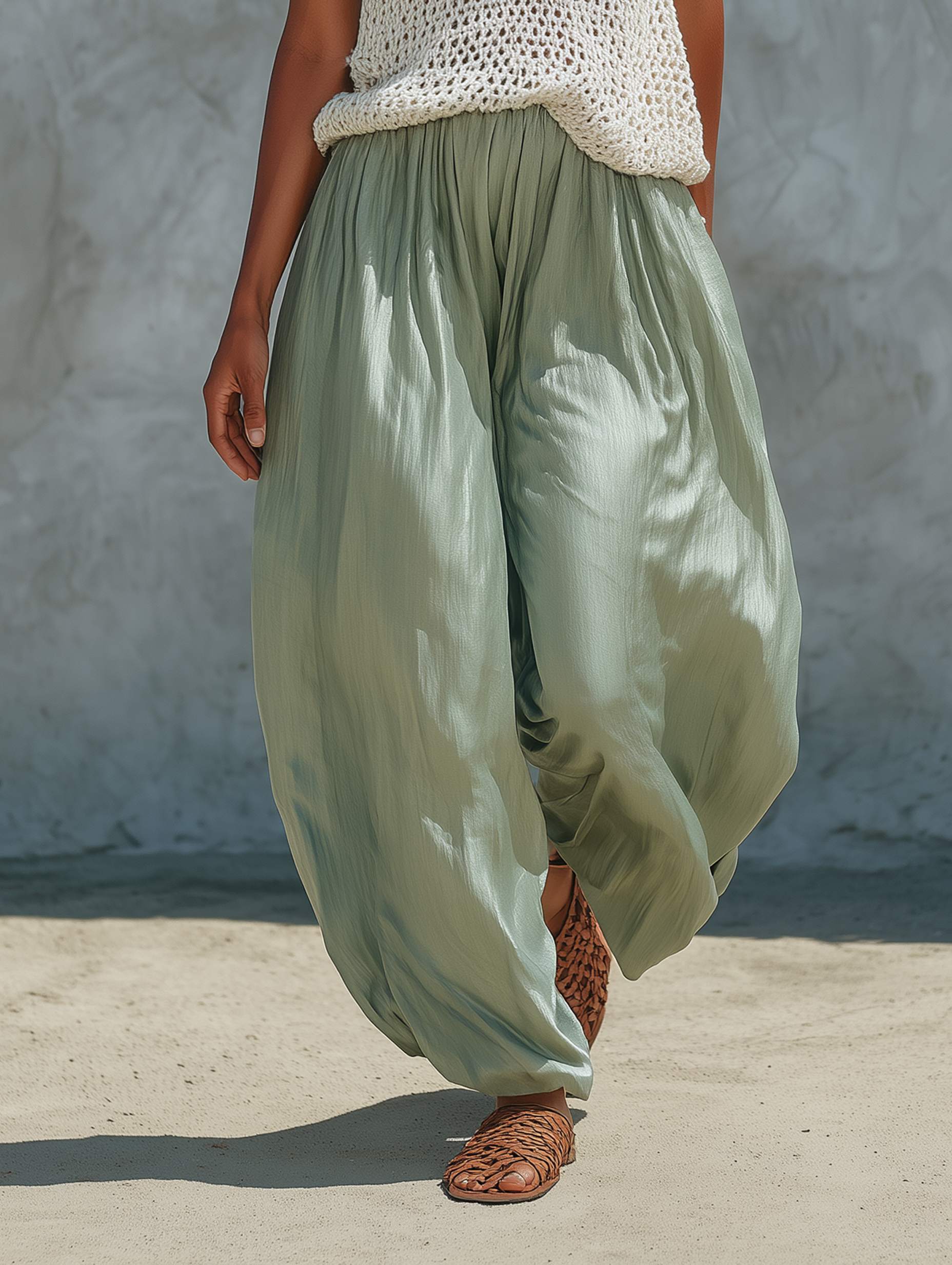 Product Name: Women's Minimalist Mesh-Knit Tank Top And Faux-Acetate Balloon Pants Set