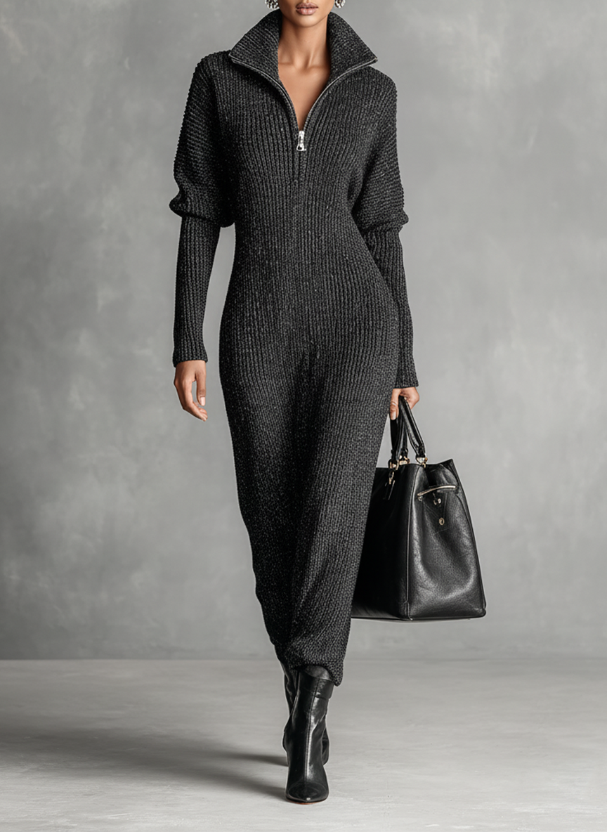 Women's Minimalist Solid Color Zipper Neck Knitted Maxi Dress