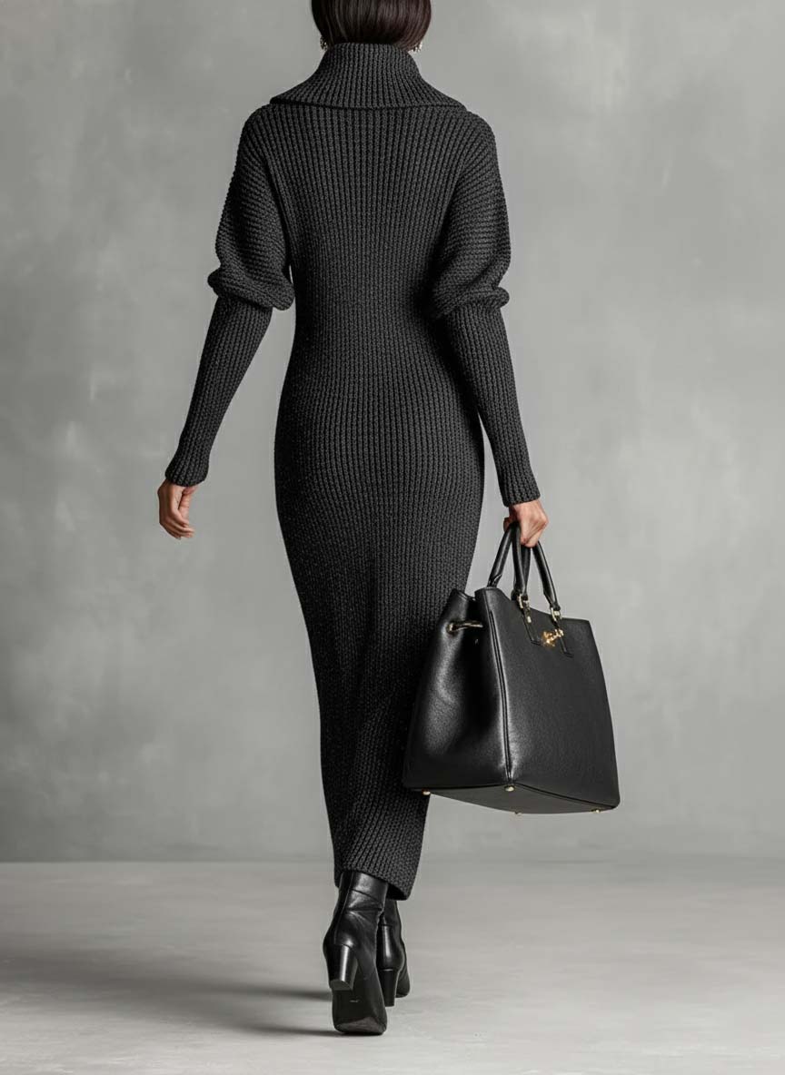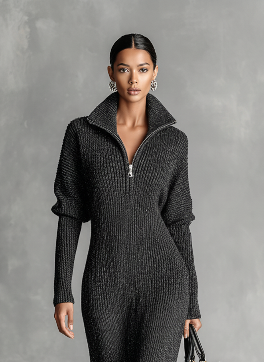 Achieve understated elegance with this minimalist knitted maxi dress. Crafted in a solid color with a sleek zipper neck design, it combines comfort and modern style for any casual or semi-formal occasion.