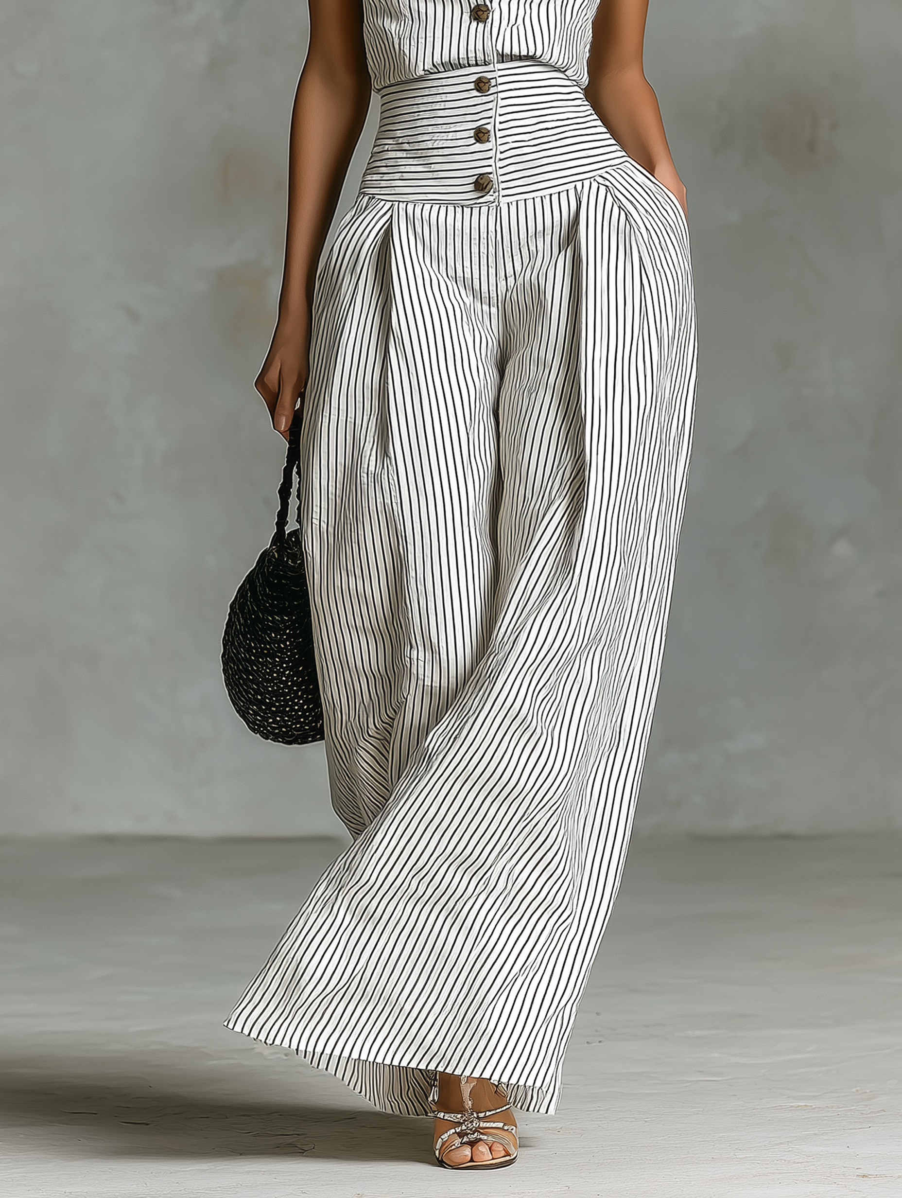 Product Name: Women's Minimalist Striped Linen Sleeveless Single-Breasted Jumpsuit