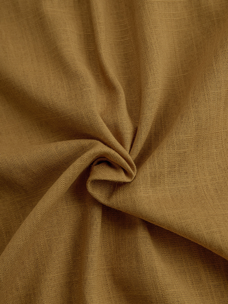 Women’s Mustard Elegant Linen-Blended Button-Front Belted Midi Shirt Dress