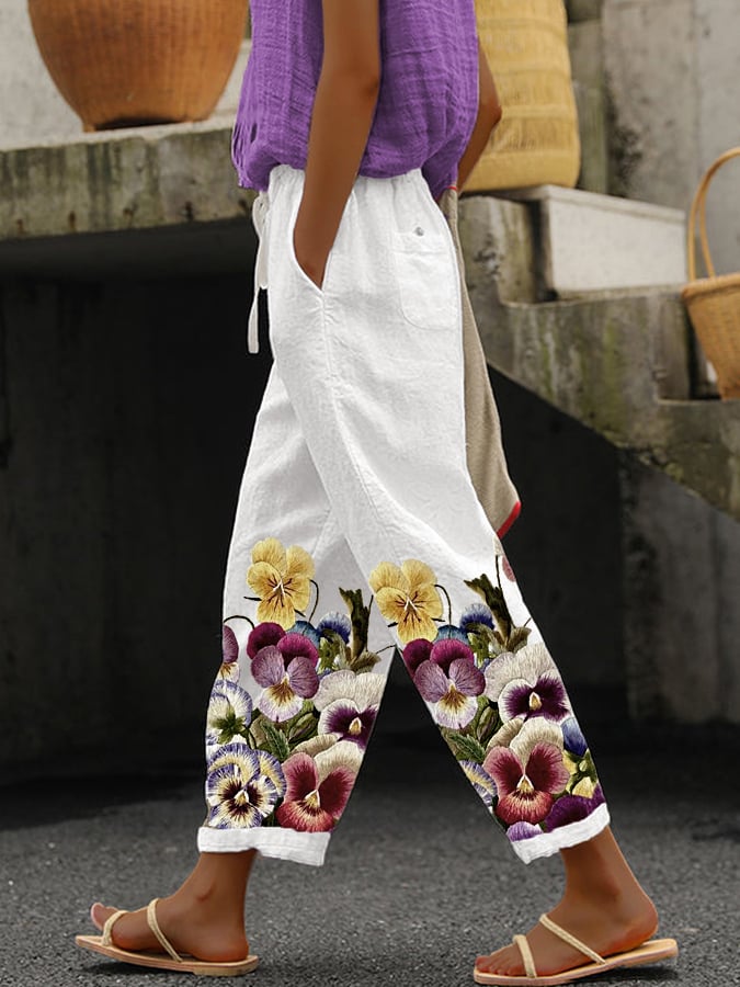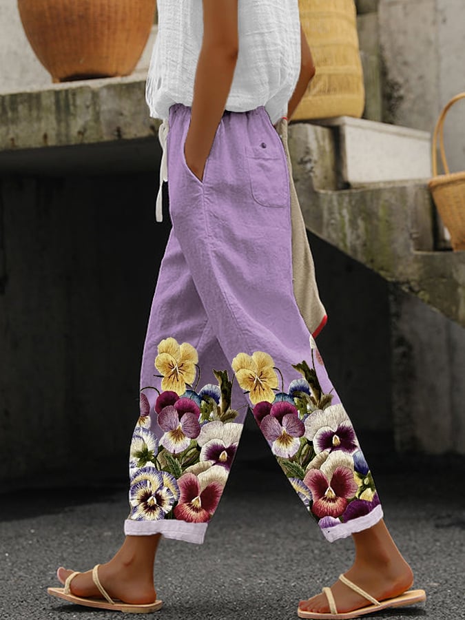 Women's Purple Floral Print Alzheimer's Awareness Support Pants
