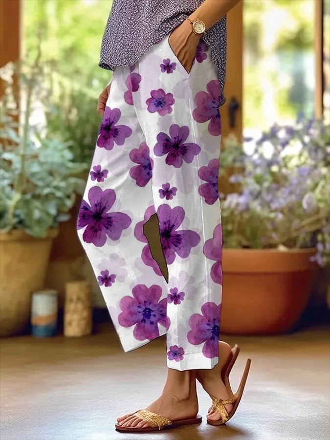 Women's Purple Flower Alzheimer's Awareness Support Casual Pants