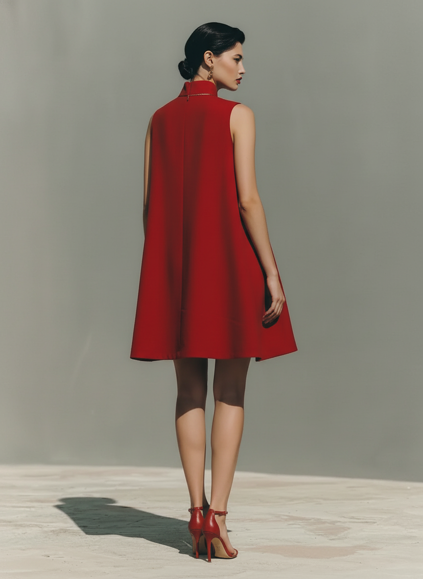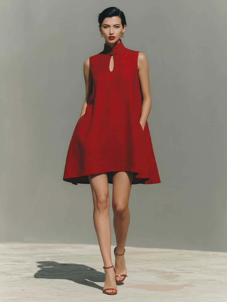 This red linen dress features a keyhole neckline and flared hem for a simple yet elegant silhouette. Its lightweight design makes it perfect for warm days and casual-chic occasions.