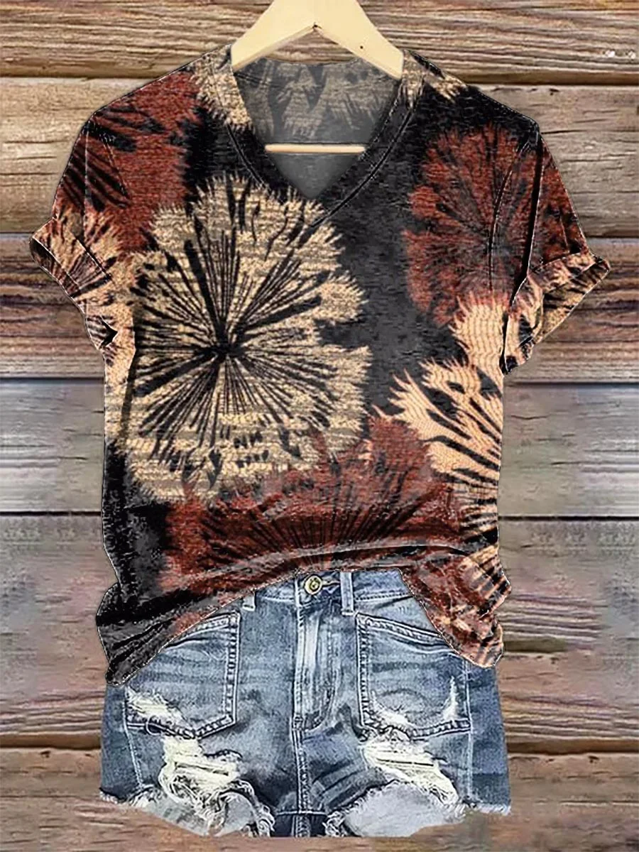 Women's Retro Ethnic Bohemian Tie Dye Art Pattern Print Casual Cotton Linen Shirt