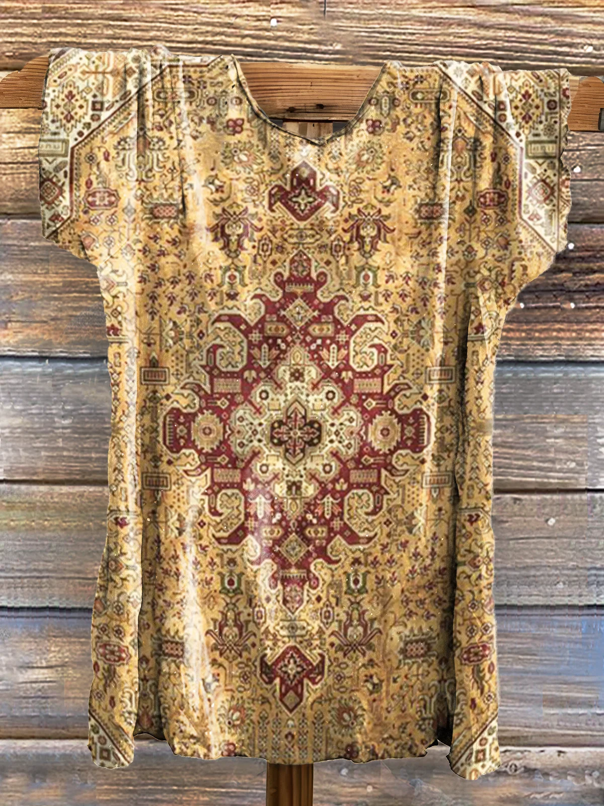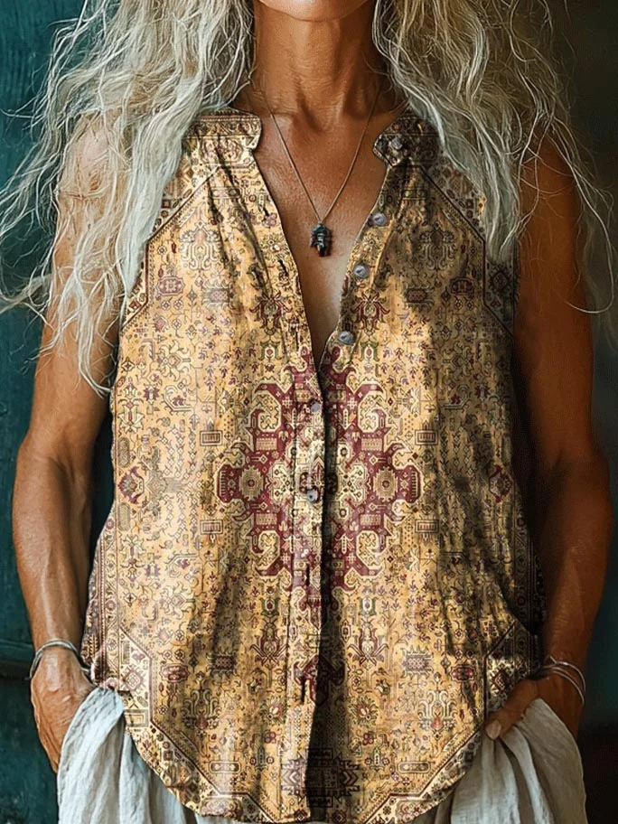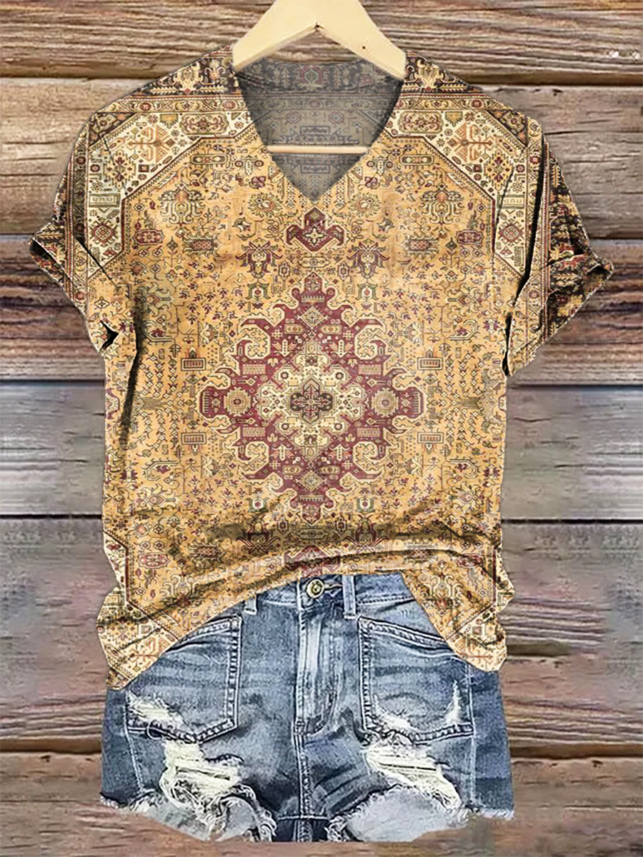 Women's Retro Ethnic Totem Pattern Print V-neck Casual T-Shirt