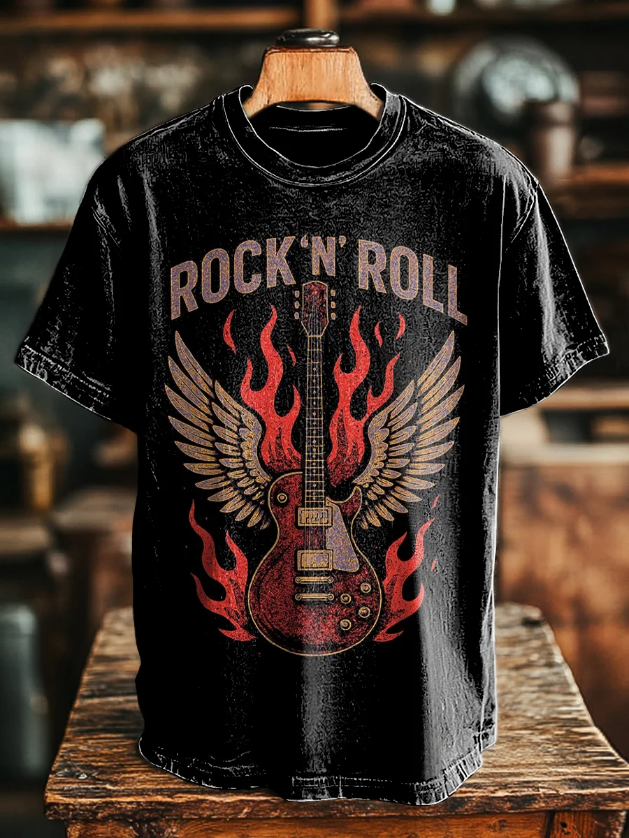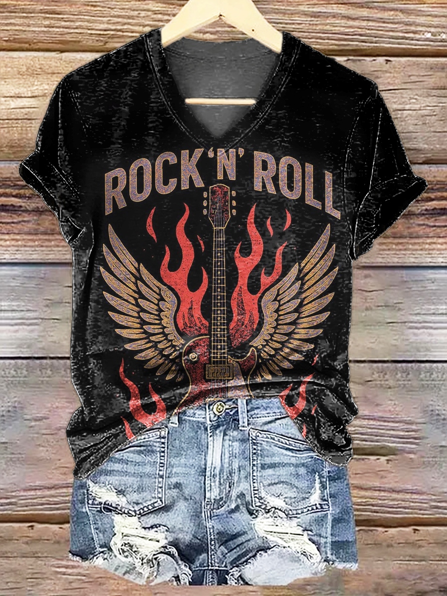 Women's Retro Rock Art Print Casual Cotton Linen Shirt