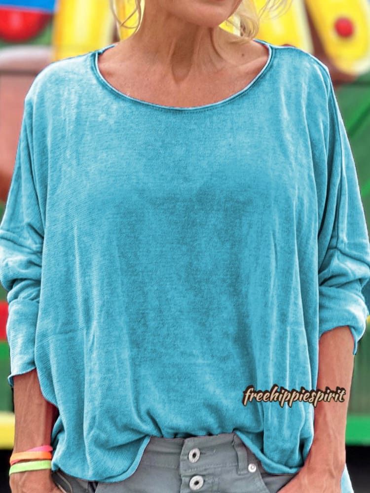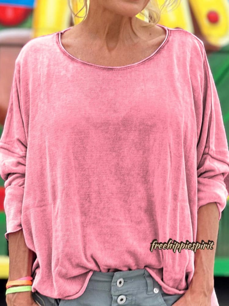 Women's Solid Color Print Casual Long Sleeve T-shirt
