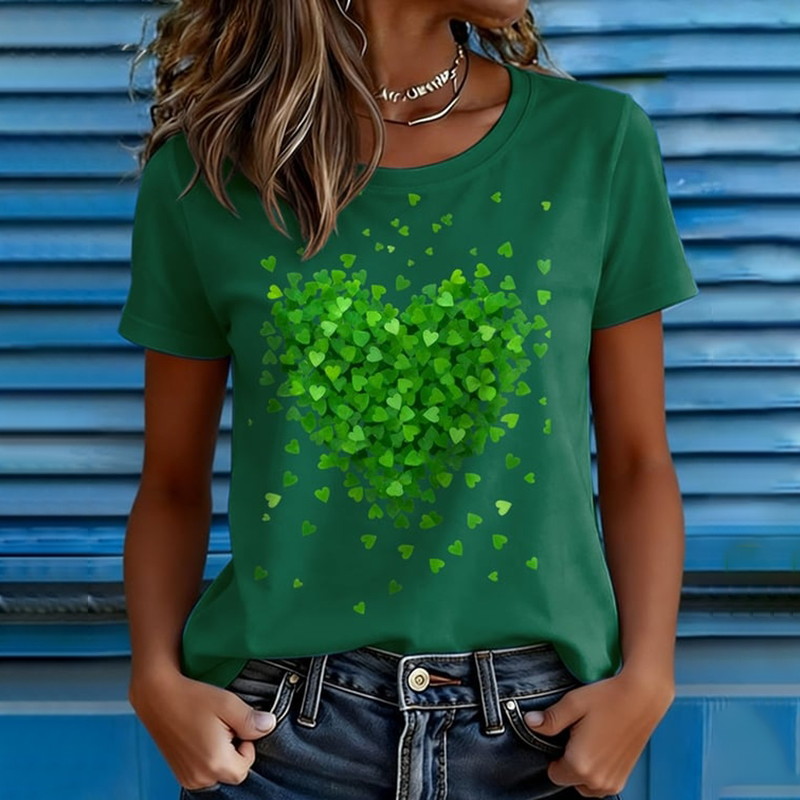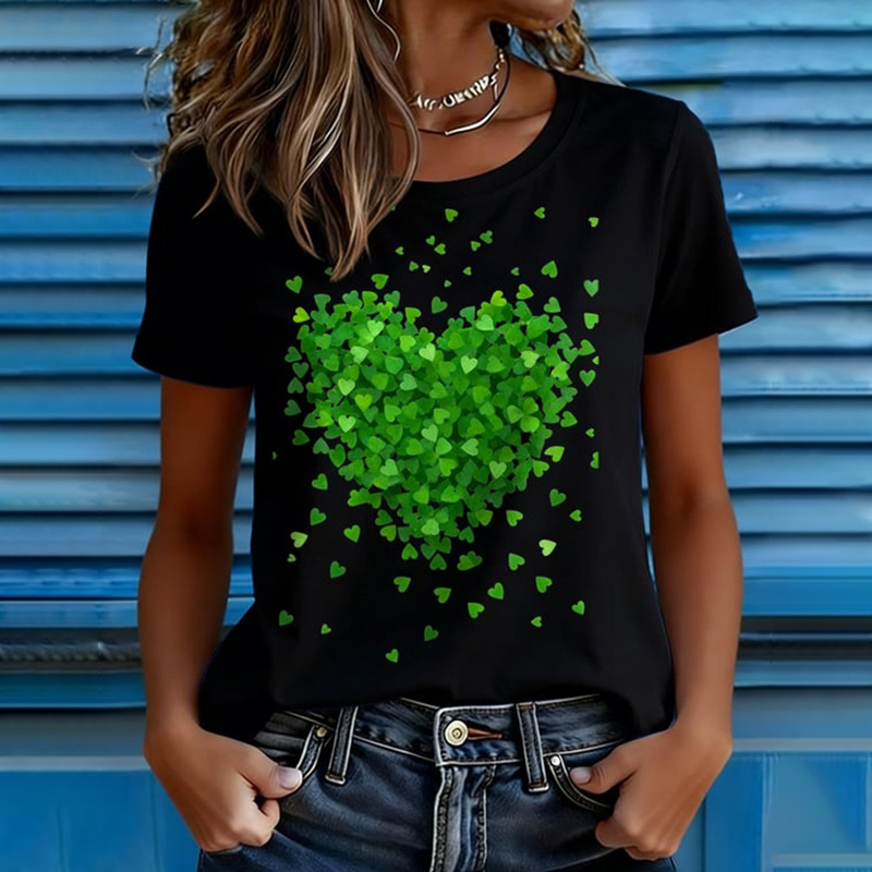 Women's St. Patrick's Day Heart Print Short Sleeve T-shirt