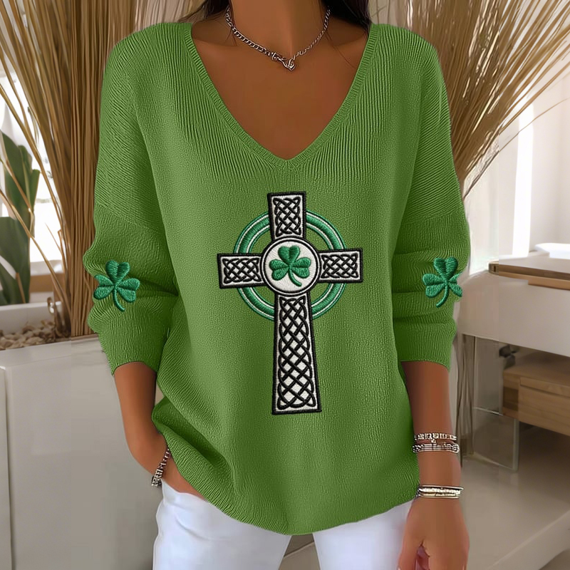 Women's St. Patrick's Day Print V-neck Knit Sweatshirt