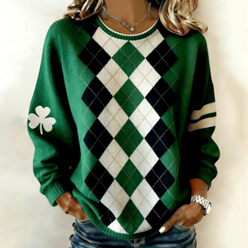 Women's St. Patrick's Day Shamrock Color Block Print Sweatshirt