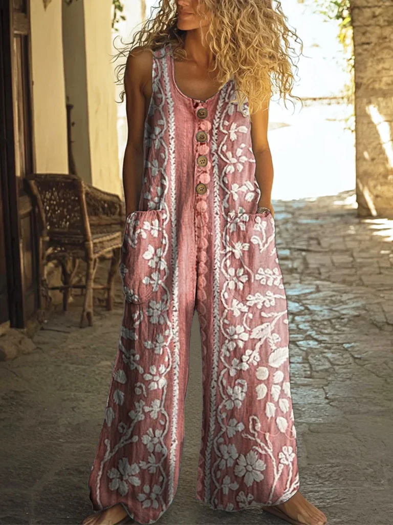 Women's Vintage Ethnic Floral Art Print V-neck Casual T-Shirt