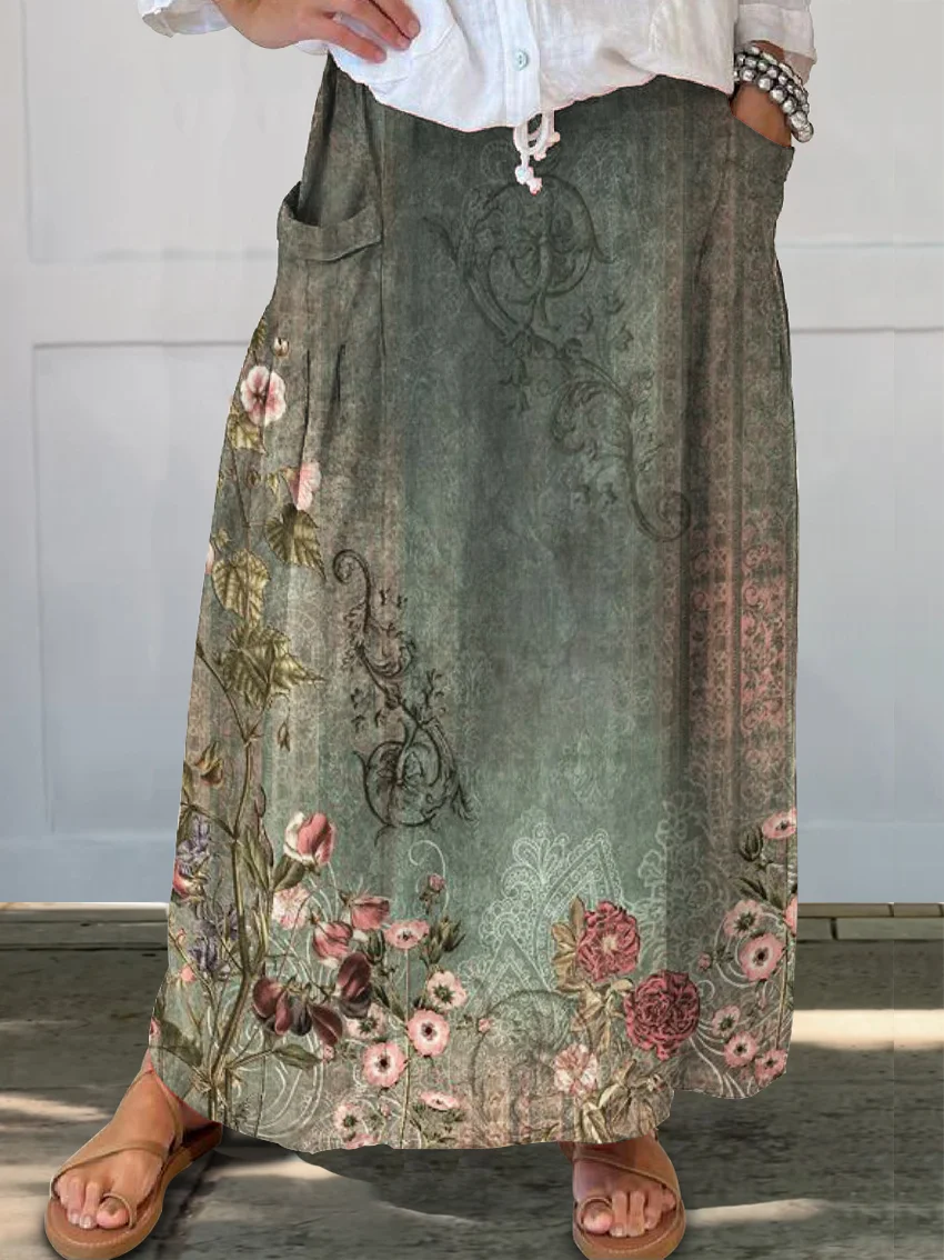 Women's Vintage Ethnic Floral Print 100%Cotton V-neck T-Shirt