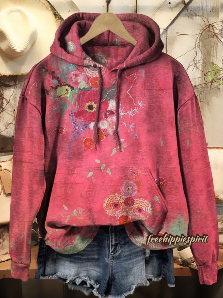 Women's Vintage Floral Art Patterns Print Casual Hoodie Sweatshirt