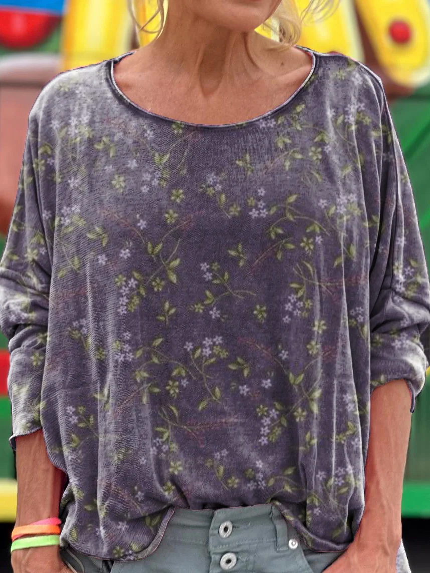 Women's Vintage Floral Art Print Casual Long Sleeve Comfortable Cotton Shirt