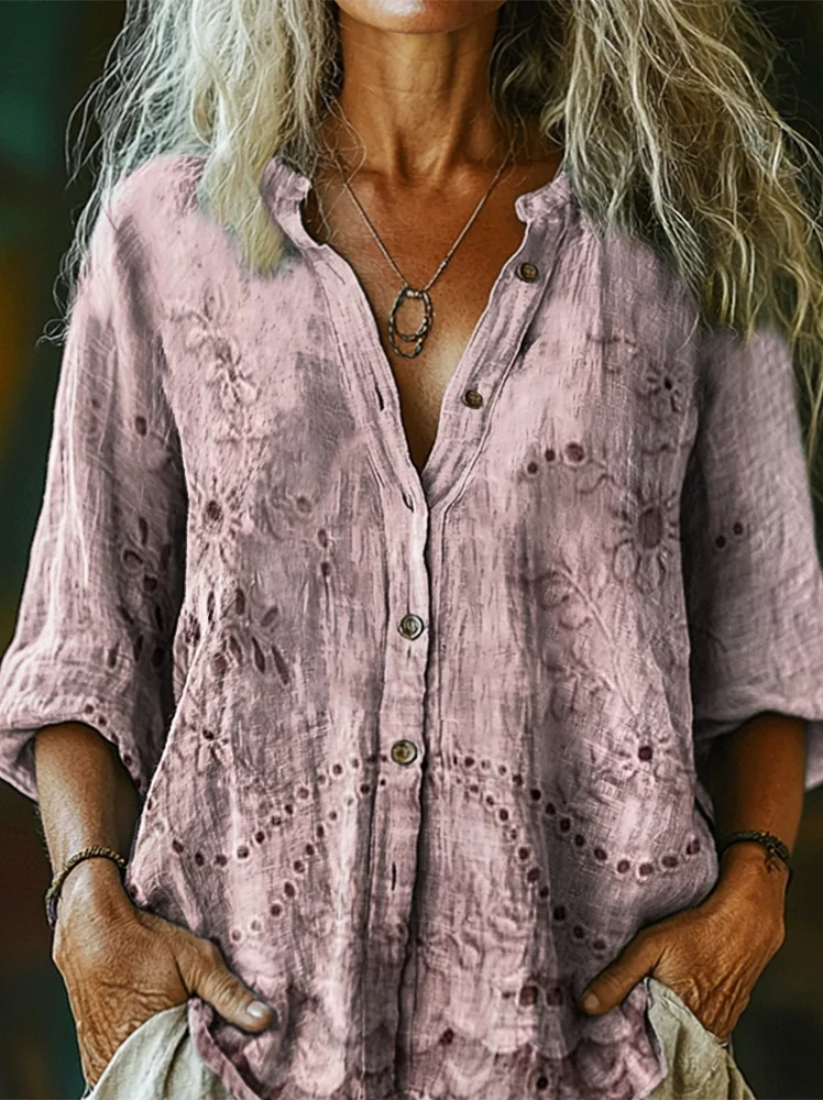 Women's Vintage Floral Texture Patterns Print V-neck Casual T-Shirt